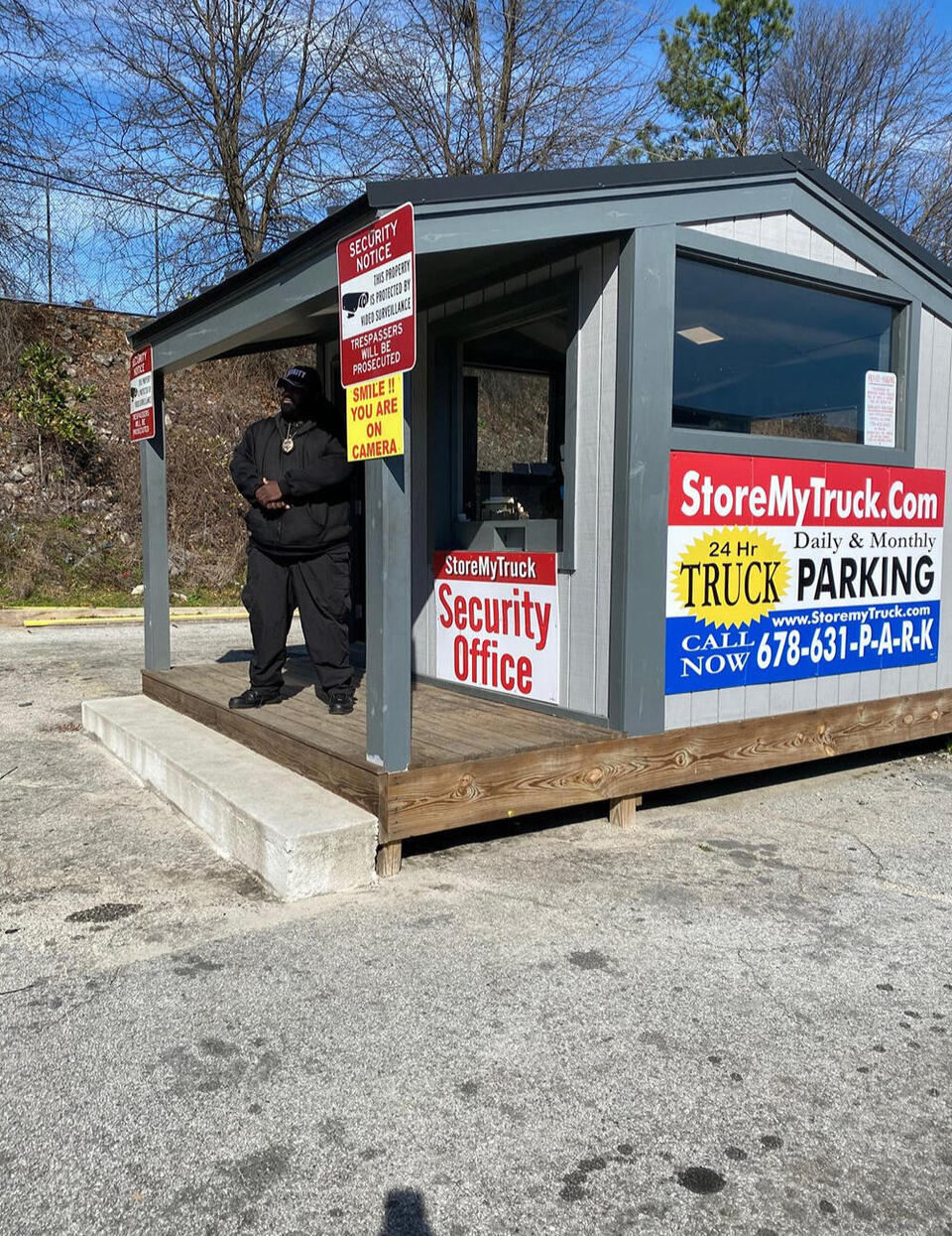 When you arrived at our high security truck parking lot, you will be greeted by highly trained security guards. They will check your vehicle in and out at the gate to ensure that no one who isn't supposed to be at our lot, is not permitted access. This helps us to keep your vehicle safe from theft, vandalism and towing. Reserve your space with us today!